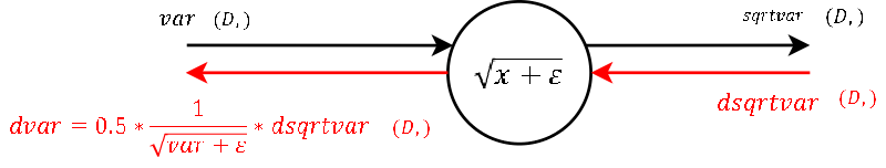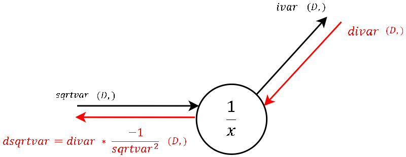 This is a "one input-one output" node where, during the forward pass, we inverted the input (square root of the variance).